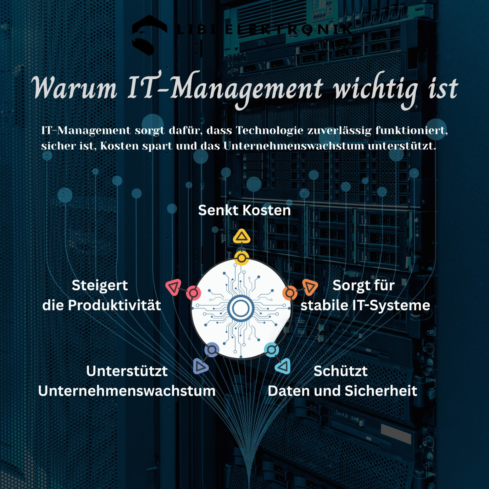 IT-Management bezieht sich auf die Überwachung und Verwaltung der Informationstechnologiesysteme eines Unternehmens, zu denen Hardware, Software und Netzwerke gehören.